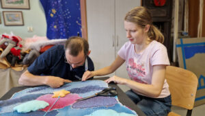 Z ogromną radością informujemy, że praca Ewy Gil i Marcina Blachury „Gołąbek spokoju” zdobyła pierwsze miejsce w finale XXII Ogólnopolskiego Konkursu Plastycznego Sztuka Osób Niepełnosprawnych „W krainie snów”. Ewa i Marcin zaprezentowali swoje dzieło w kategorii „tkanina i aplikacja”. Praca powstała pod opieką Katarzyny Gwiżdż, instruktorki pracowni artterapii.