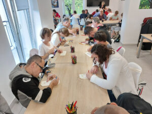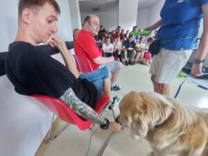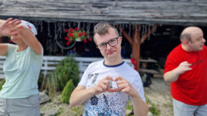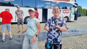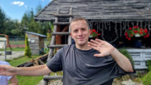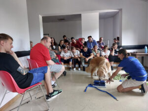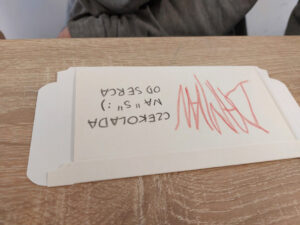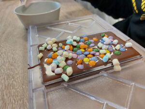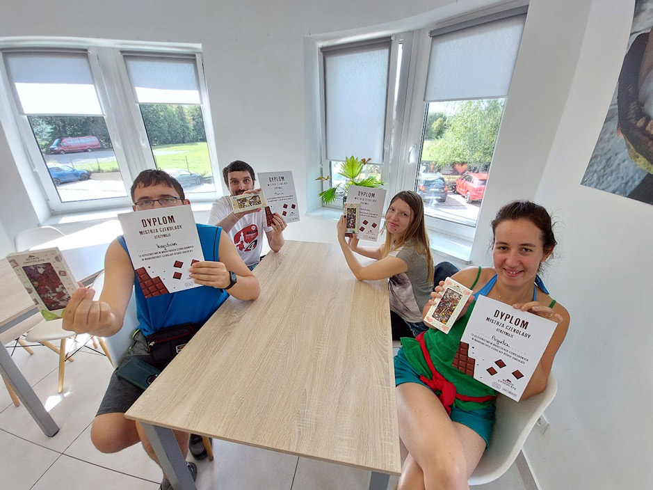 W manufakturze czekolady Beskid Chocolate w Węgierskiej Górce zobaczyliśmy jak powstaje rzemieślnicza czekolada z ziaren kakaowca. Mieliśmy niewiele czasu, aby udekorować płynną czekoladę. Kiedy czekolada zastygała w chłodni, ozdabialiśmy kredkami papierowe pudełko, do którego później zapakowaliśmy swoją tabliczkę czekolady. Potem pojechaliśmy do malowniczej miejscowości Laliki. Tam, w Ośrodku Rehabilitacyjno-Szkoleniowo-Wypoczynkowym czekał na nas pyszny grill i spotkanie ze wspaniałym psem rasy golden retriever. Można było nakarmić i pogłaskać psa. Właścicielka czworonoga opowiadała nam jak należy zachowywać się wobec psa. Pogoda nam dopisała. Był czas na rozmowę i żarty. Potańczyliśmy. To była udana wycieczka. Wszyscy dobrze się bawiliśmy.